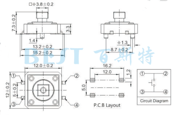 規(guī)格尺寸:12×12輕觸開(kāi)關(guān)