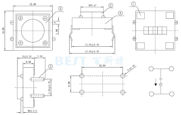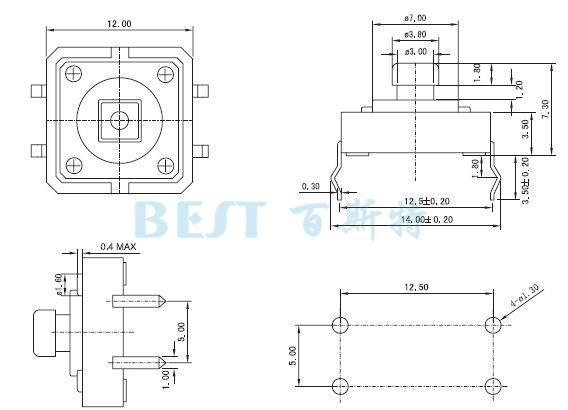 輕觸開(kāi)關(guān)12×12_TS-1103CW_參考圖紙: